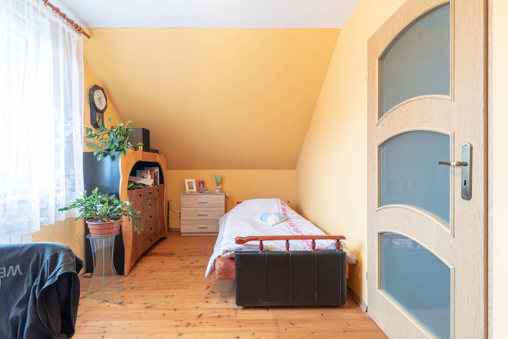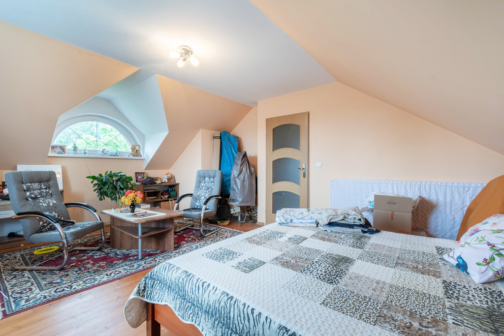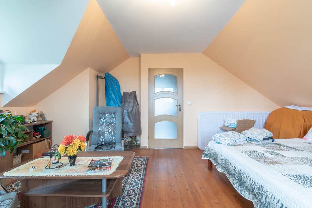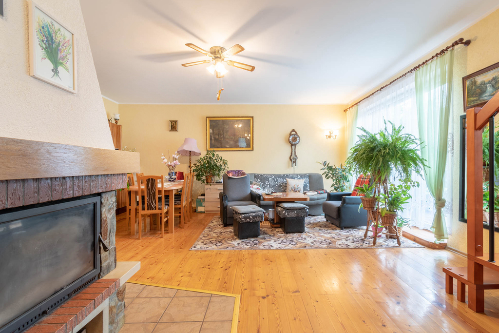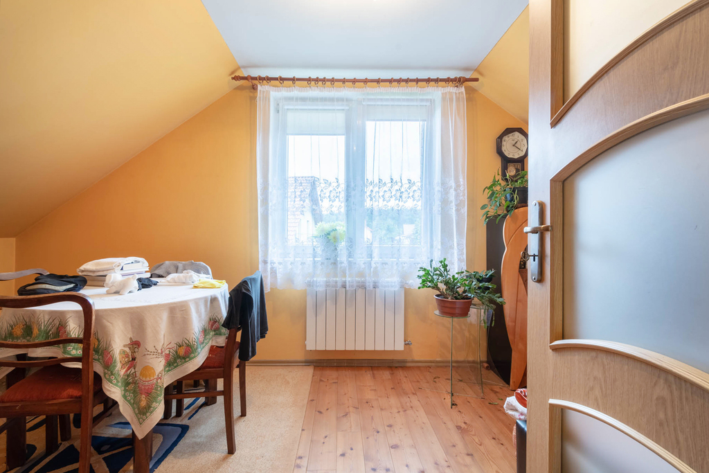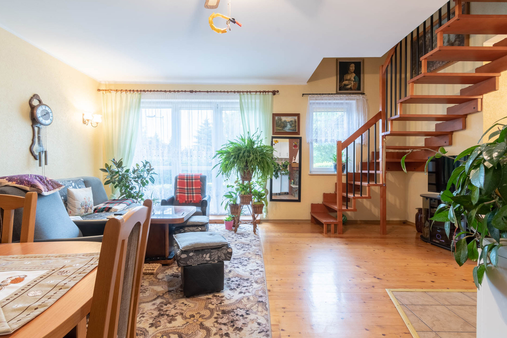Rozkład pomieszczeń - parter:- salon z aneksem kuchennym- sypialnia- łazienkaRozkład pomieszczeń - piętro:- 2 sypialnie - łazienka- schowek Dom idealny dla rodziny, pary lub osób ceniących sobie przestrzeń i ciszę.Na szczególną uwagę zasługuje pięknie zagospodarowana działka o powierzchni 850 m². Znajdziemy tu liczne nasadzenia, zadbany trawnik, miejsce do wypoczynku i relaksu.Walory lokalizacji:•Bliskość Poznania – zaledwie 15 minut jazdy do centrum miasta, a jednocześnie cisza i spokój podmiejskiej okolicy.•Szybki dostęp do trasy S11 i A2 – komfortowy dojazd w kierunku Katowic, Warszawy, Wrocławia czy Berlina.•Komunikacja miejska – dogodny dojazd do Poznania także komunikacją podmiejską.•Tereny rekreacyjne w pobliżu – lasy, ścieżki rowerowe, Jezioro Skrzyneckie i pobliski Wielkopolski Park Narodowy.•Rozwijająca się infrastruktura – w okolicy sklepy (Biedronka, Dino), przedszkola, szkoły podstawowe, żłobki i punkty usługowe.•Cisza, bezpieczeństwo i kameralna zabudowa – idealne miejsce do życia dla rodzin z dziećmi i osób szukających spokoju.