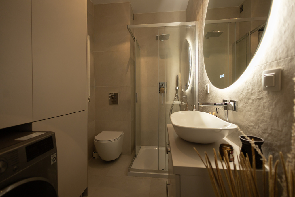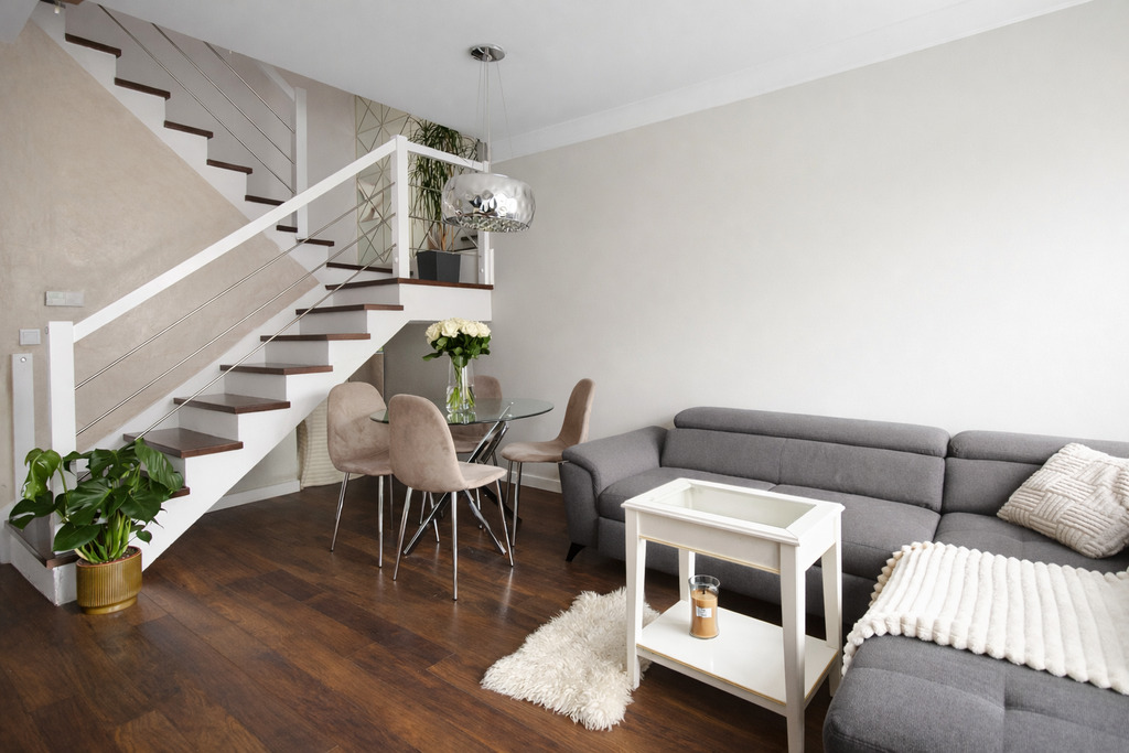 Wnętrza są spójne, bardzo dobrze doświetlone i urządzone z dbałością o detale. Duże przeszklenia, estetyczne materiały wykończeniowe oraz efektowne schody nadają nieruchomości nowoczesny i przytulny charakter.Komfort codziennego użytkowania podnoszą klimatyzacja oraz elektryczne rolety sterowane pilotem. Dużym atutem jest również łazienka, świeżo po remoncie.