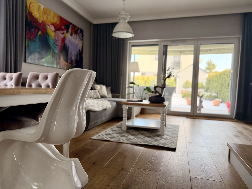 Działka 549 m², ogród w pełni zagospodarowany i doinwestowany, salon z kominkiem, podłogówka, pełne wyposażenie.